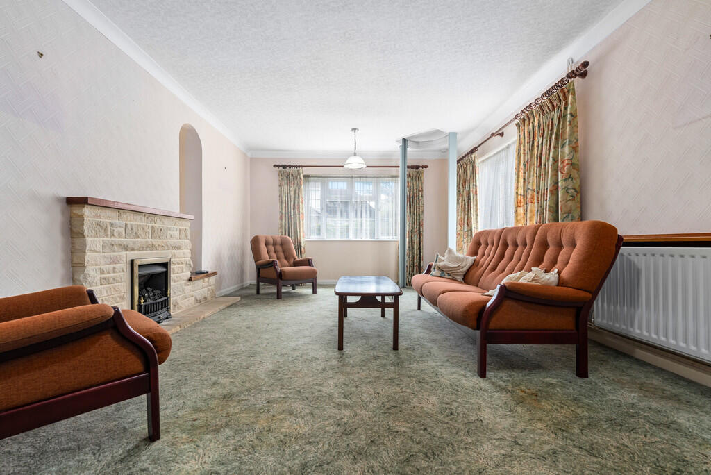 LOUNGE19' 6" x 12' 5" (5.962m x 3.798m) uPVC double glazed window to front, plus uPVC double glazed French doors to side. Radiator. Feature fireplace housing gas fire.
