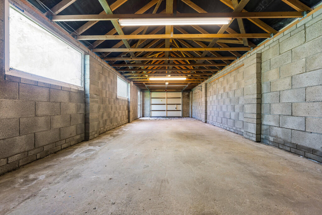 DETACHEDGARAGE Detached garage with electric up and over door. uPVC double glazed window to side, plus pedestrian door. Power and lighting.