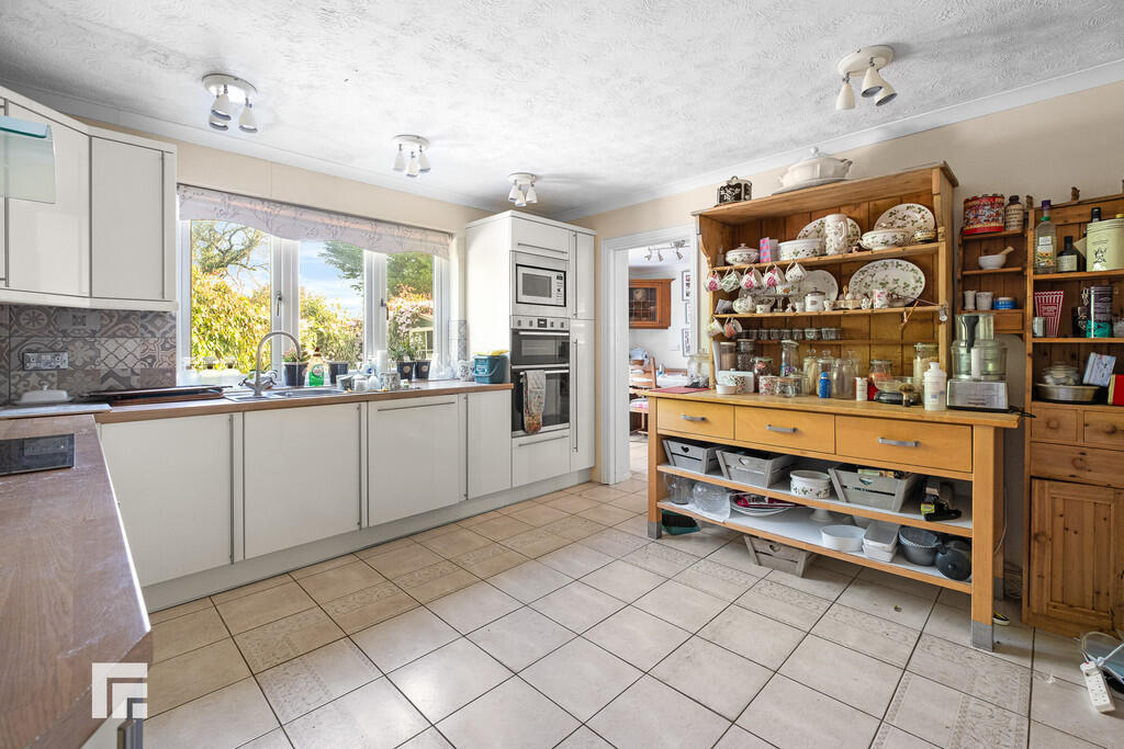 KITCHEN13' 6" x 13' 0" (4.12m x 3.98m) Fitted Kitchen to comprise a range of base and wall units with rolled edge laminated work surfaces incorporating stainless steel sink and drainer with chrome mixer taps over. Four burner electric hob, grill and cooker. Integral microwave and dishwasher. Double glazed window to the rear. Ceramic tile flooring and splash back. Double glazed window to the rear overlooking the garden. Door to Breakfast Room.
