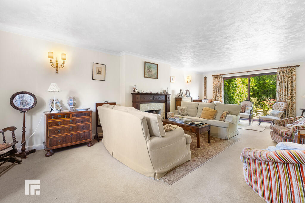 LOUNGE26' 1" x 14' 10" (7.97m x 4.53m) Very spacious living room offering versatile living space. Double glazed window to the front and french doors to the rear giving access to the garden. Fitted carpet. Tiled hearth with fire. Radiator.