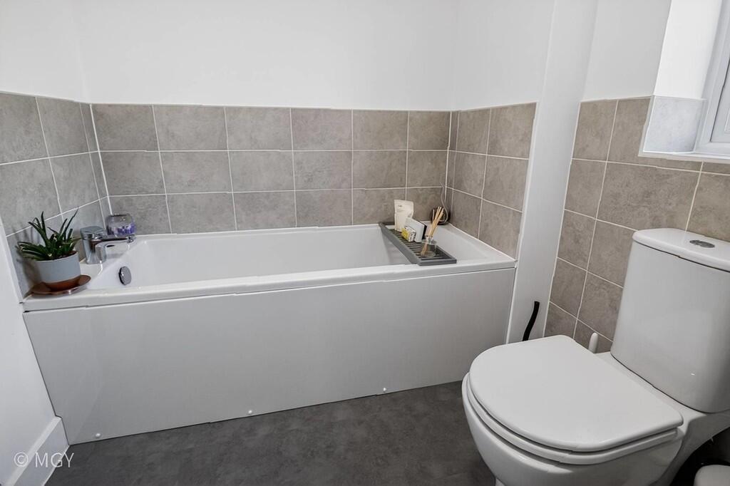 BATHROOM10' 0" x 6' 1" (3.05m x 1.87m) A modern, stylish family bathroom with suite comprising panelled bath, shower cubicle, WC and wash hand basin. uPVC double glazed window to the rear with fitted Venetian blind. Amtico floor and part tiled walls. Heated towel rail. Shaver point. Extractor.