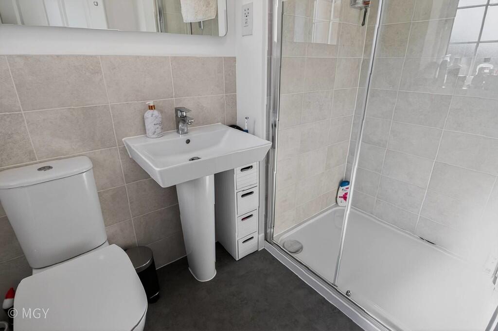 EN-SUITE7' 2" x 5' 8" (2.20m x 1.73m) Amtico flooring. Suite comprising a shower cubicle, wash hand basin and WC. uPVC double glazed window to the front with obscured glass and fitted Venetian blind. Part tiled walls. Heated towel rail. Shaver point.