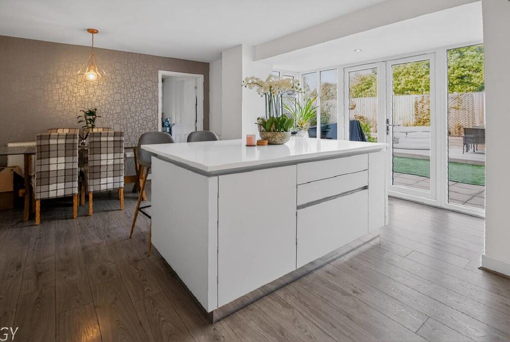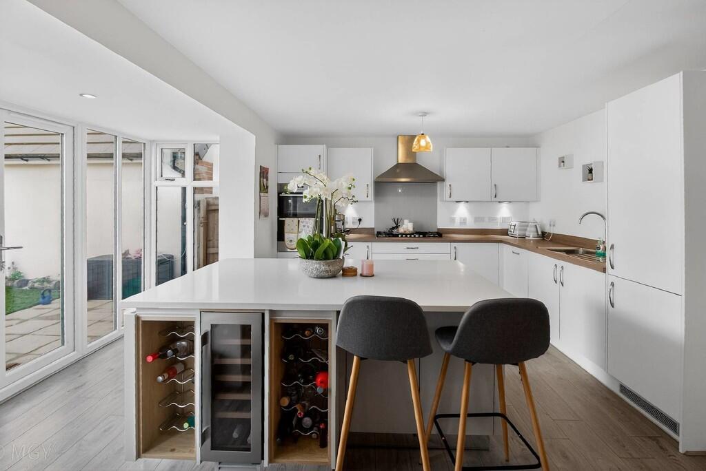 KITCHEN/DINER19' 4" x 11' 6" (5.91m x 3.53m) This open living / dining / kitchen space is located to the rear of the property, overlooking the garden and is ideal for families and for entertaining. Amtico flooring. The fitted kitchen comprise a range of fitted units with white gloss doors and stone effect work surfaces. Integrated appliances including fridge freezer, dishwasher, six burner gas hob with extractor hood over, electric oven and grill. Single bowl stainless steel sink with drainer. Attractive uPVC double glazed double doors and windows to the garden. Power points and TV point. Central heating radiator. Door to the utility room.