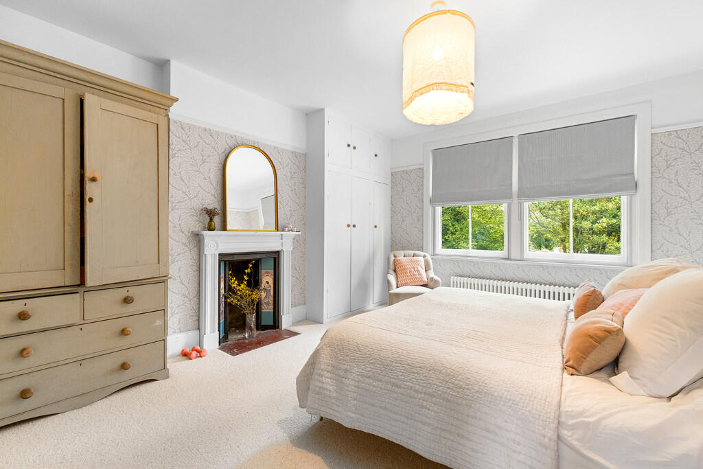 BEDROOMONE14' 3" x 12' 11" (4.35m x 3.94m) Overlooking the entrance approach, an excellent sized primary bedroom. Feature fireplace. Column radiator. Doors to ensuite and separate cloakroom.