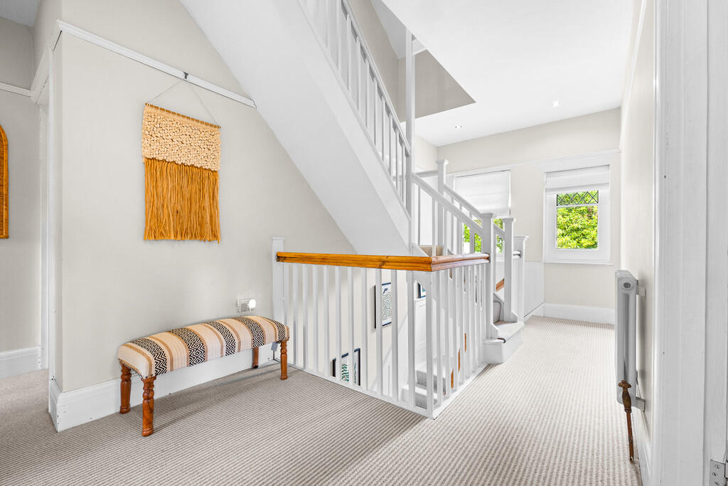 LANDING Approached via a full turning staircase with newel post and spindle banister leading to the large central landing area. Two windows to front. Additional staircase to second floor. Traditional column radiator.