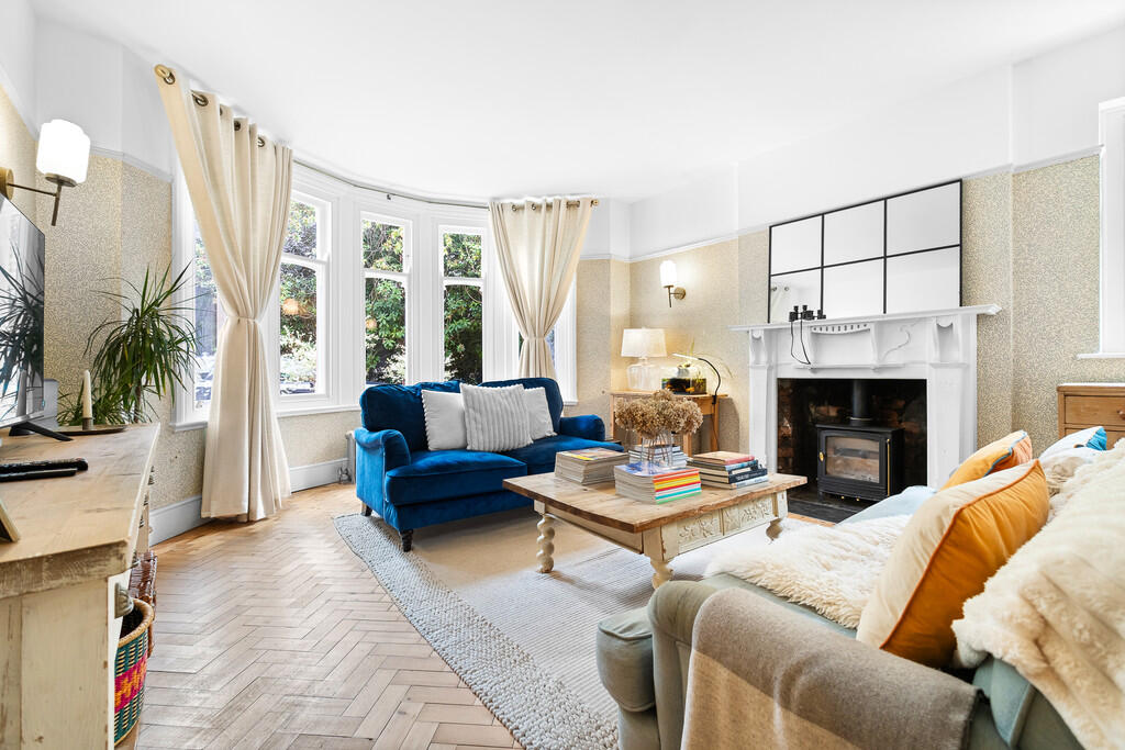 SITTINGROOM13' 8" x 12' 5" (4.19m x 3.81m) With two large double glazed sash cord windows to front, a good sized sitting room. Wood block flooring. Reclaimed traditional column radiator.