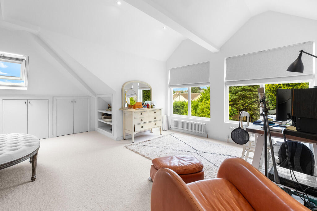 BEDROOMFOUR19' 1" x 17' 1" (5.83m x 5.22 maxm) A large fourth bedroom enjoying full views of the rear garden. Additonal window to side pitch. Eaves storage. Two column radiators. Door to ensuite two.