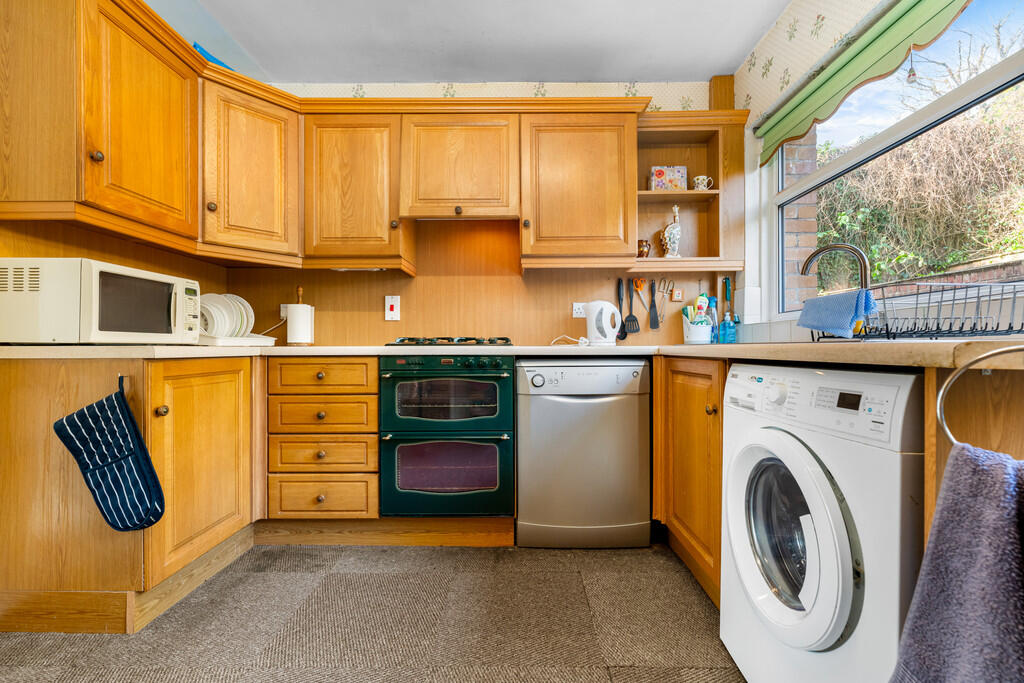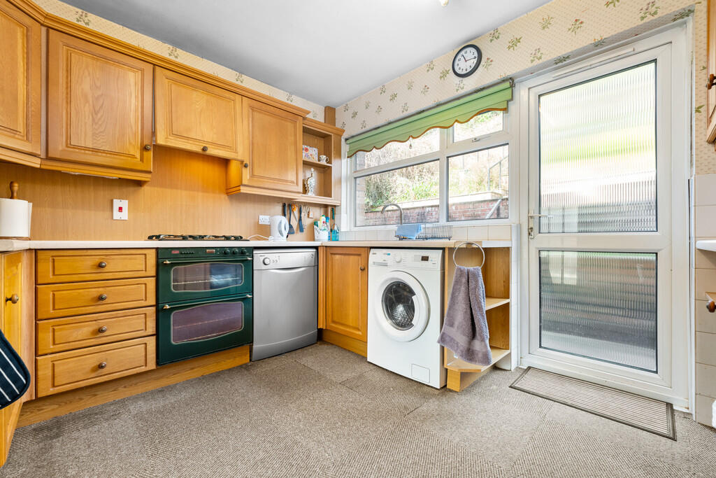KITCHEN10' 4" x 9' 7" (3.15m x 2.94m) With units and worktops to four sides. Inset stainless steel sink with side drainer. Inset four ring gas hob with oven below, concealed cooker hood above. Matching range of eye level wall cupboards. Cupboard housing gas central heating boiler. Door and window to rear.