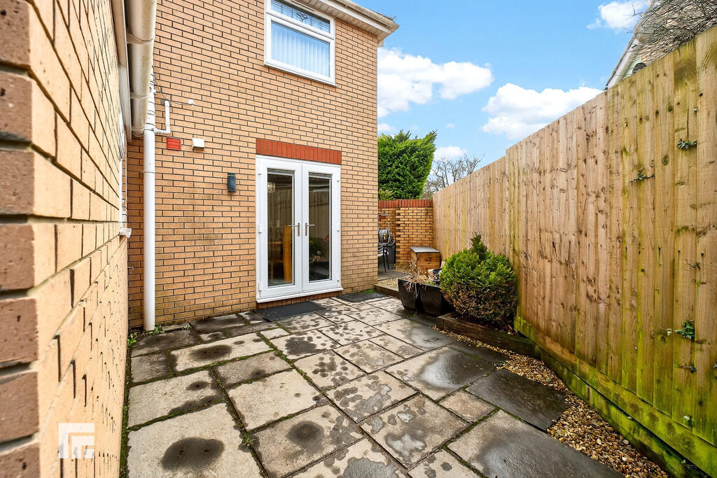 REARGARDEN Paved patio leading onto an area of lawn. Wide area to side with space for storage shed. Access to side.