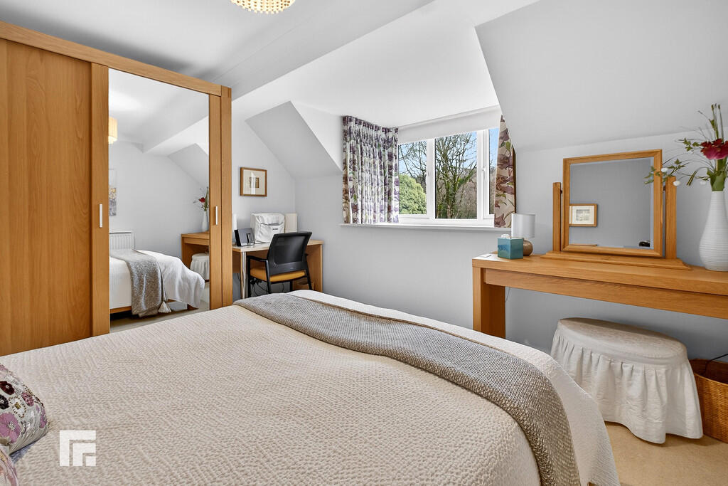 BEDROOMTWO12' 9" x 12' 11" (max)(3.91m x 3.95m) A second double bedroom. Ample space for wardrobes. Radiator. Deep bay, dormer window looking out to garden and woodland.