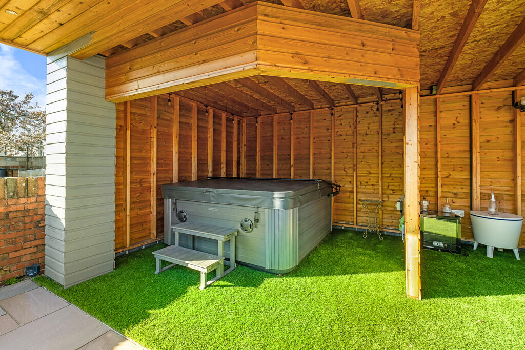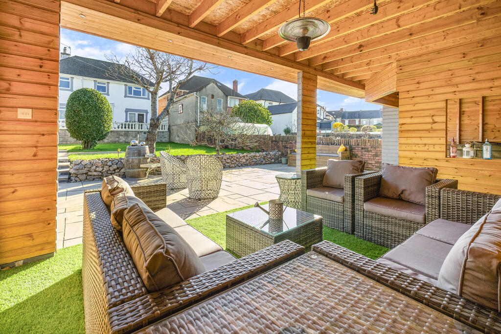 REARGARDEN An exceptionally large rear garden comprising sizeable paved patio with steps to the large area of lawn. To the rear of the garden is a further paved patio opening to the timber open fronted garden room with power and lighting offering excellent relaxation all year round. Outside tap. Spacious storage room beneath the annex. Double opening timber gates to the rear opening to a rear two car driveway leading to the garage.