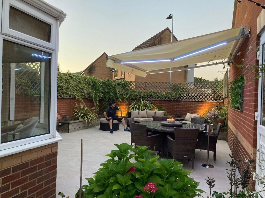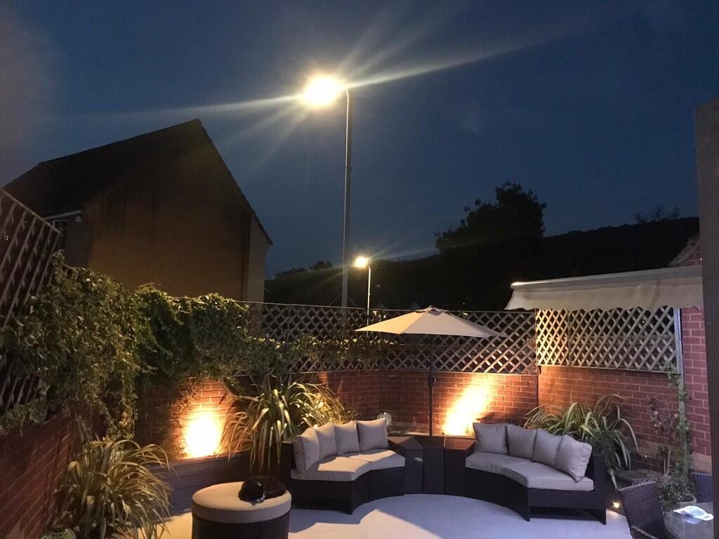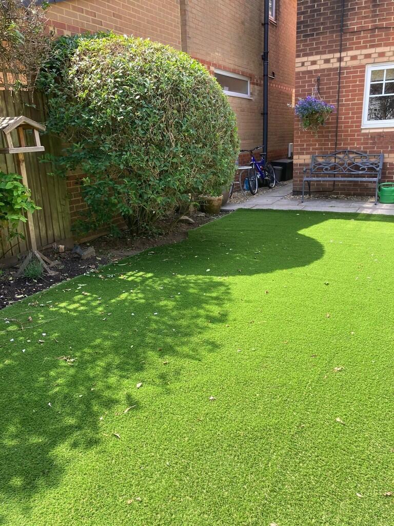 REARGARDEN A delightful garden of two parts with large paved porcelain patio with raised plan and shrub beds. Continuation of the garden is artificial lawn with neat beds of plants and shrubs with a rear paved patio. Access to side. Enclosed along two sides in brick wall with remaining in timber fencing. Outside lighting. Outside tap. Electric awning over paved patio.