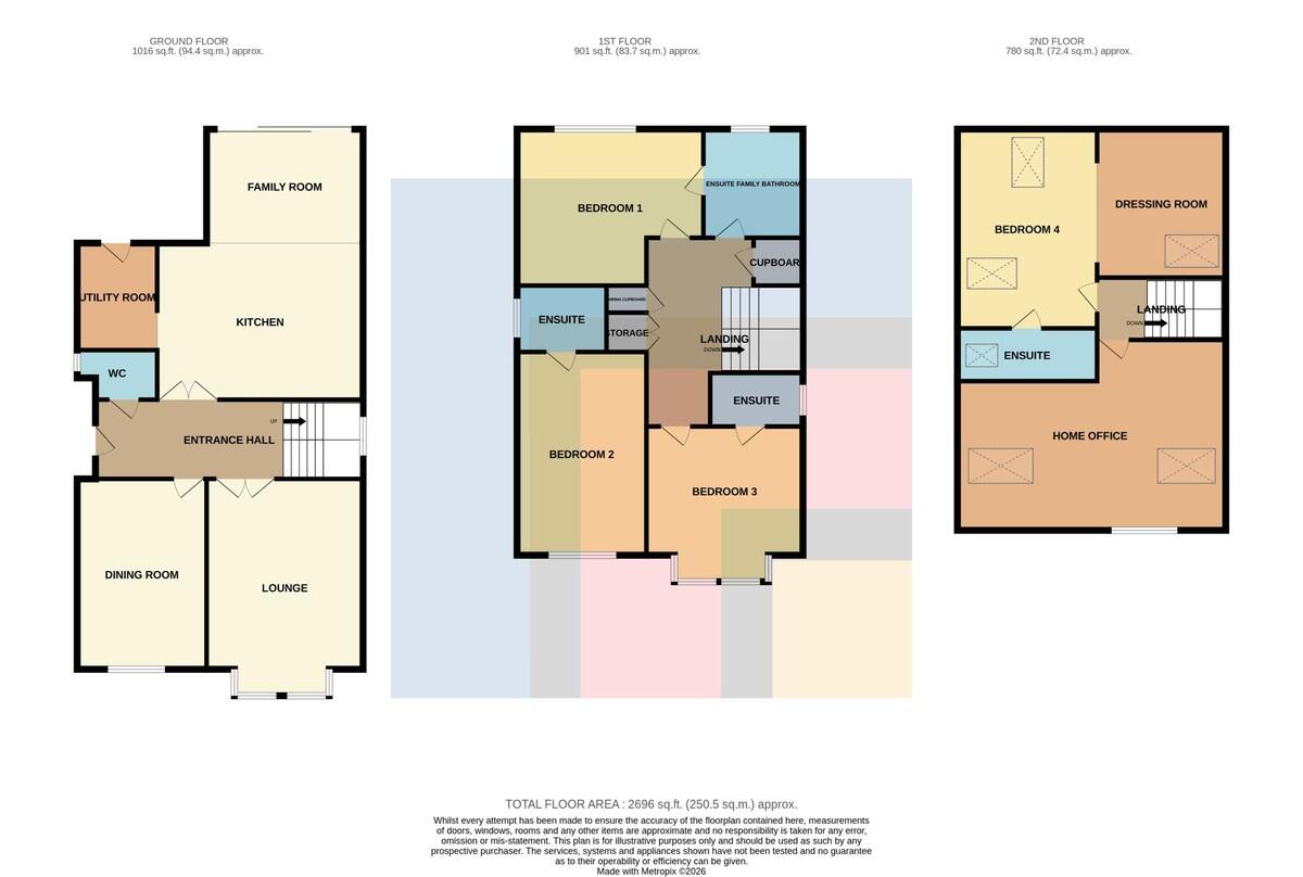 ENSUITEBATHROOM8' 7" x 8' 5" (2.62m x 2.59m) Again beautifully appointed with window to rear elevation. Fully tiled double shower with glass sliding doors, tiled bath with concealed central taps, glass wash hand basin set in vanity unit and low level wc. Heated towel rail. Mirror with lighting. Jack and Jill door to landing.