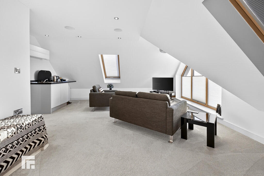 LOUNGE/BEDROOMFIVE24' 3" x 16' 2" (7.40m x 4.93m) An impressive double bedroom or 2nd floor lounge with superb open countryside views to the front elevation. Feature window to the front with three further roof windows. Kitchen units with worktop and inset sink. Air conditioning unit.