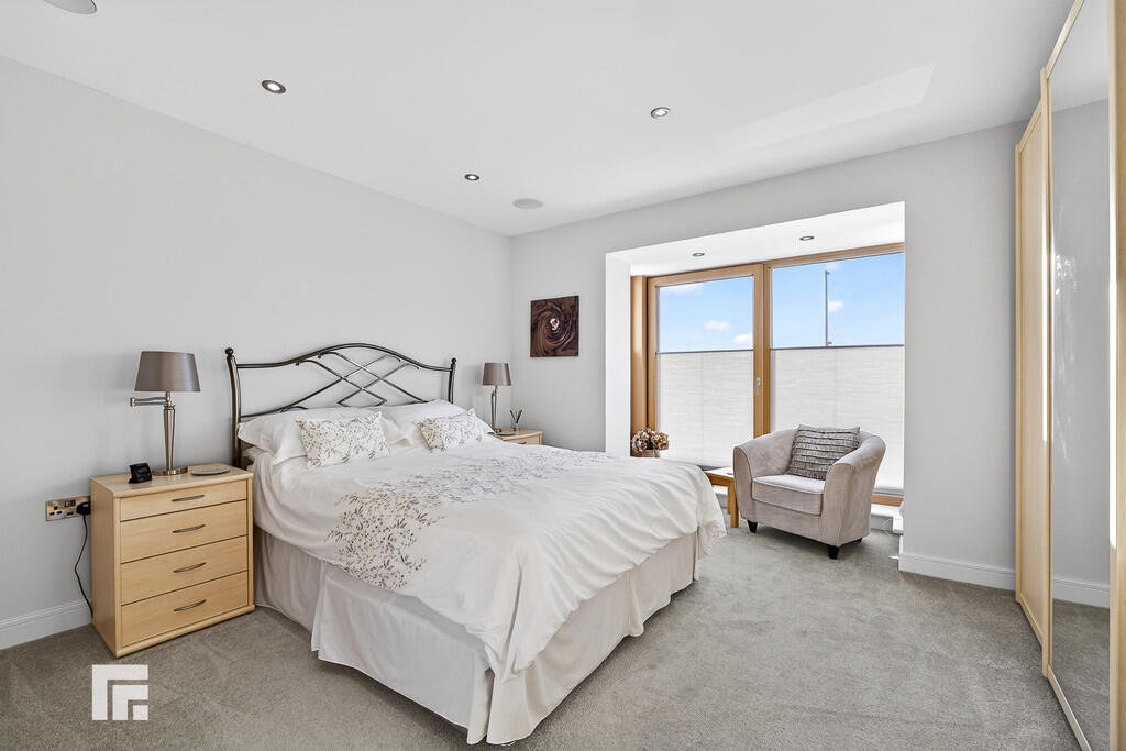 LANDING Approached via bespoke staircase constructed with glass, solid oak and stainless steel to give a 'floating' contemporary effect befitting the style of the property. Large double door airing cupboard housing the hot water cylinder. Media cupboard. Oak veneered feature doors to all rooms.