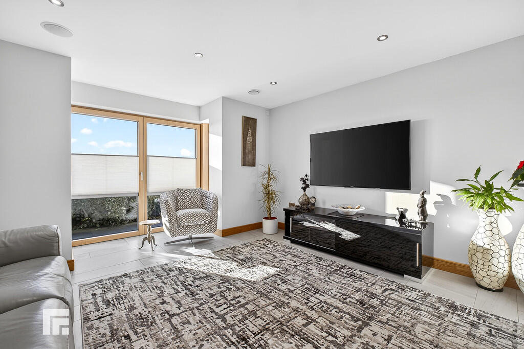 LOUNGE19' 7" x 13' 3" (5.97m x 4.06m) A bright and spacious primary reception room with the continuation of Porcelain tiled flooring. Recessed spotlights to ceiling. Full height windows/doors to front elevation with superb open views.