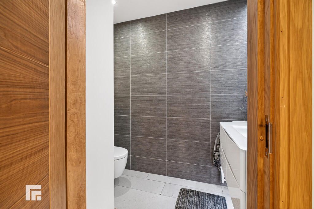 Triple Glazed high performing tilt/turn windows supplied by Internorm (Austria) which have grey powder coated aluminium on the outside and a light wood finish on the inside to complement the contemporary style. Many windows are full height to maximise solar gain and light. Automatic opening of some roof windows which is controlled via a mixture of internal temp, external temp, amount of sunlight, month of year and time of day. There are also rain censors so that they automatically close.
