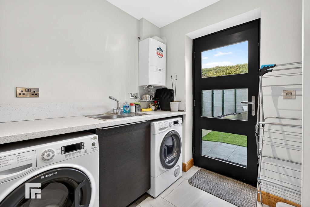 UTILITYROOM7' 11" x 6' 11" (2.43m x 2.12m) Door giving access to rear. Plumbed for washing machine and separate tumble dryer. Wall mounted boiler. Single bowl sink unit, tall storage cupboard. Continuation of Porcelain flooring and recessed spotlights.
