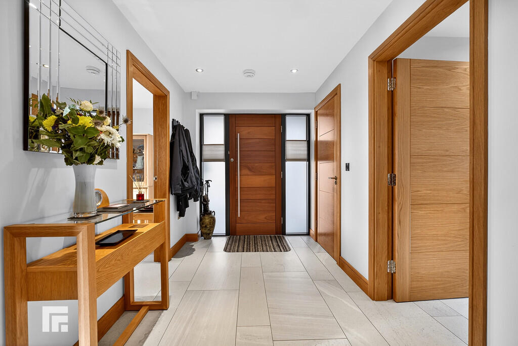 ENTRANCEHALL22' 10" x 7' 1" (6.96m x 2.17m) Entered via individually contemporary styled high performance front door manufactured from oak with long stainless steel bar handle. Porcelain tiled floor throughout ground floor. Oak joinery and internal doors. Feature bespoke stairs constructed with glass, solid oak and stainless steel to give a 'floating' contemporary effect.