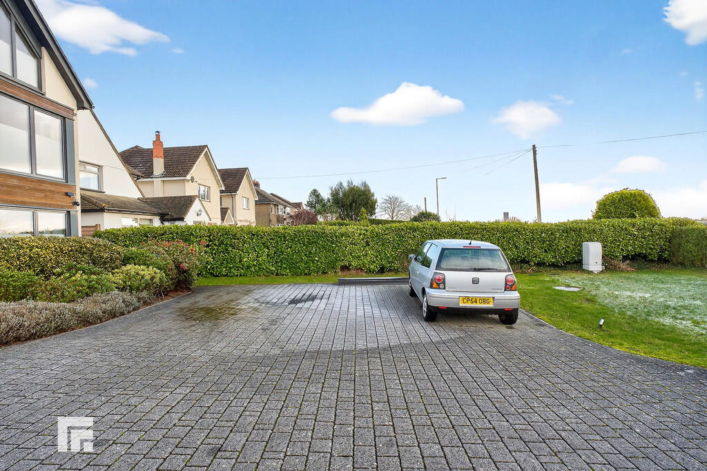 FRONT The property is set in a delightful plot with a large frontage having soft landscaping and hedging together with granite paved areas. Parking for 3 cars. Electric gates to the front with cedar panelling to match the exterior of the house. These can be operated from a switch in the house, remote hand held button or app.