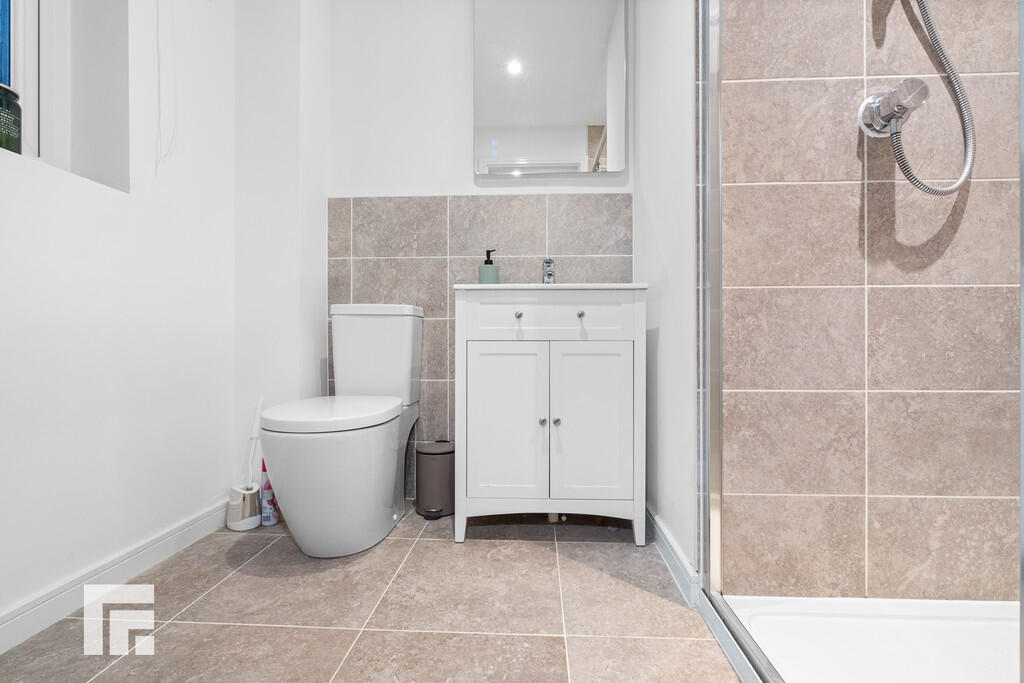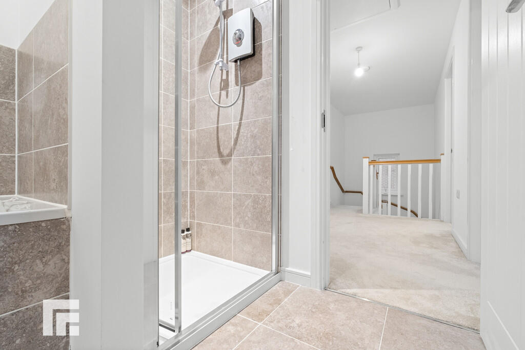 ENSUITE A modern suite comprising low level WC, vanity enclosed wash hand basin and shower cubicle. Tiled floor and splash backs. Extractor fan. uPVC double glazed window to front Radiator.