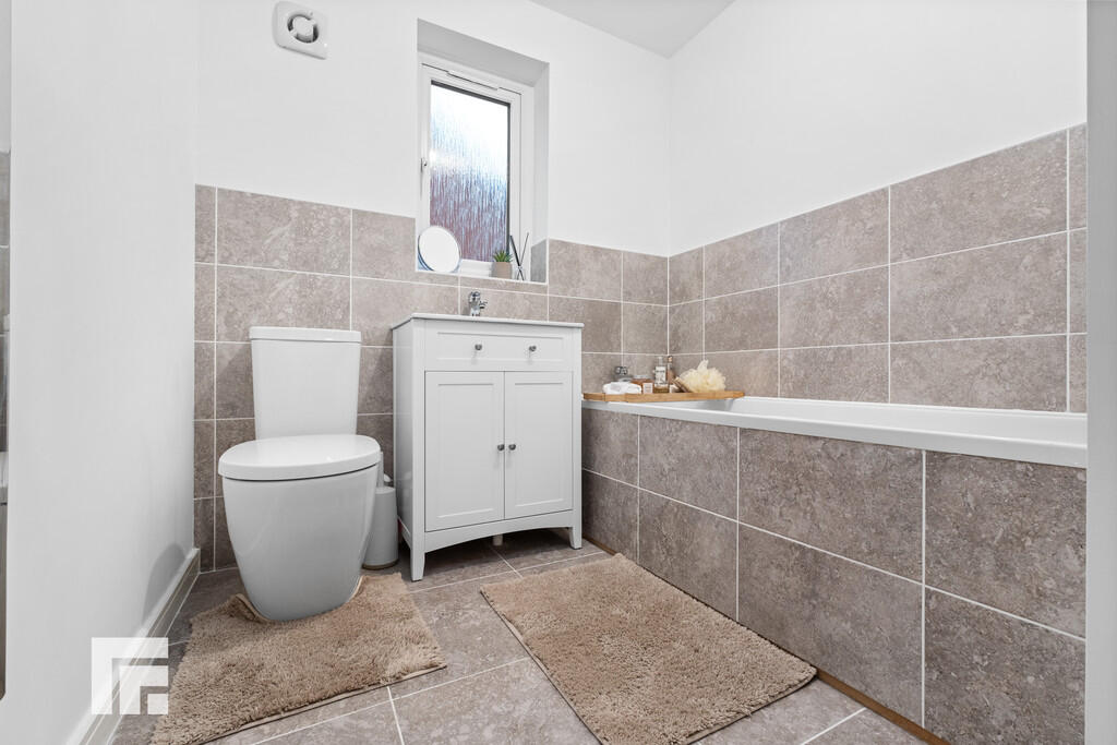 BATHROOM A stylish suite to include low level WC, vanity enclosed wash hand basin, fitted bath, and separate shower cubicle. Tiled flooring and splash backs. Extractor fan. Radiator. uPVC double glazed window to the side.