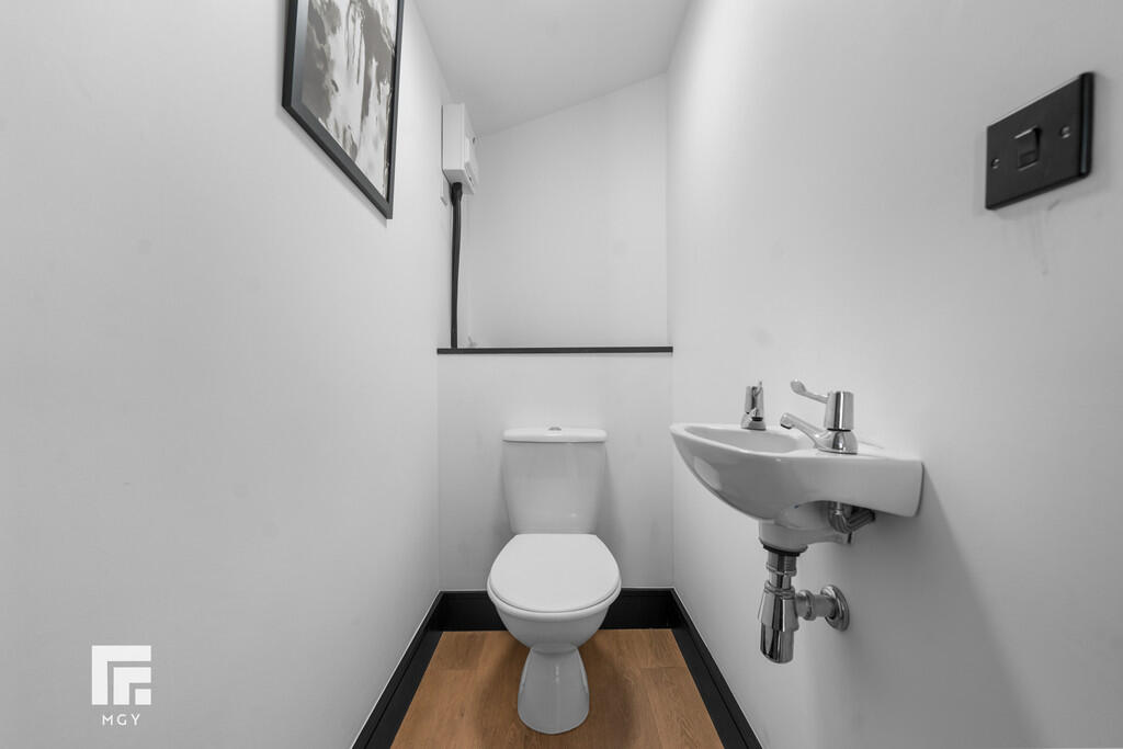 CLOAKROOM6' 1"(max) x 4' 7" (1.87m x 1.40m) Low level WC and wall mounted wash hand basin. Radiator. LVT flooring. uPVC double glazed window to front.