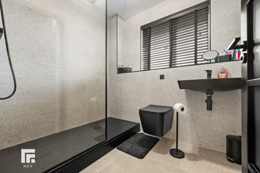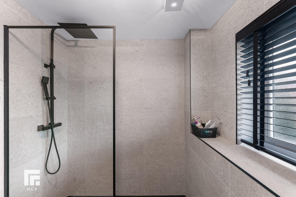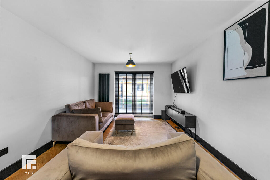 SHOWERROOM6' 11" x 5' 5" (2.12m x 1.67m) A stylish shower room with walk-in shower, wash hand basin and floating low level WC. Fully tiled walls and flooring. uPVC double glazed window to rear. Ladder radiator. Extractor fan.