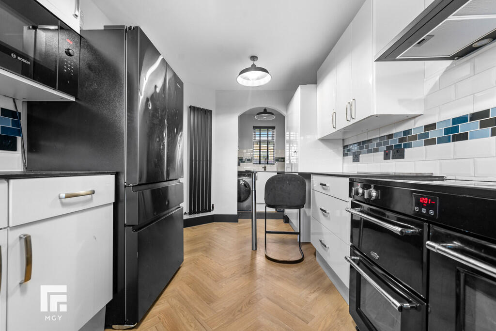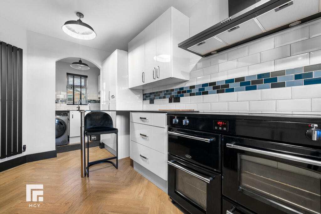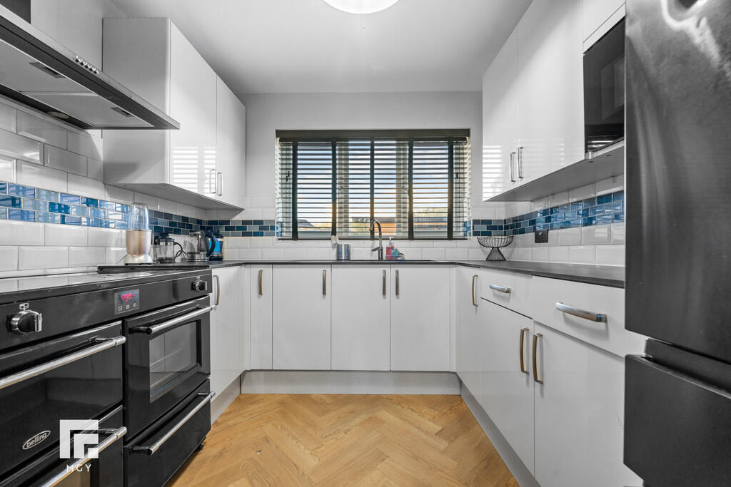 KITCHEN/BREAKFASTROOM14' 8" x 8' 5" (4.49m x 2.59m) Fitted with base and eye level units incorporating one and a half bowl stainless steel sink with complementary work surfaces. Fitted range cooker with extractor hood over. Space for American fridge/freezer. Tiled splash backs. LVT flooring. uPVC double glazed window to rear. Radiator. Opening to utility room.