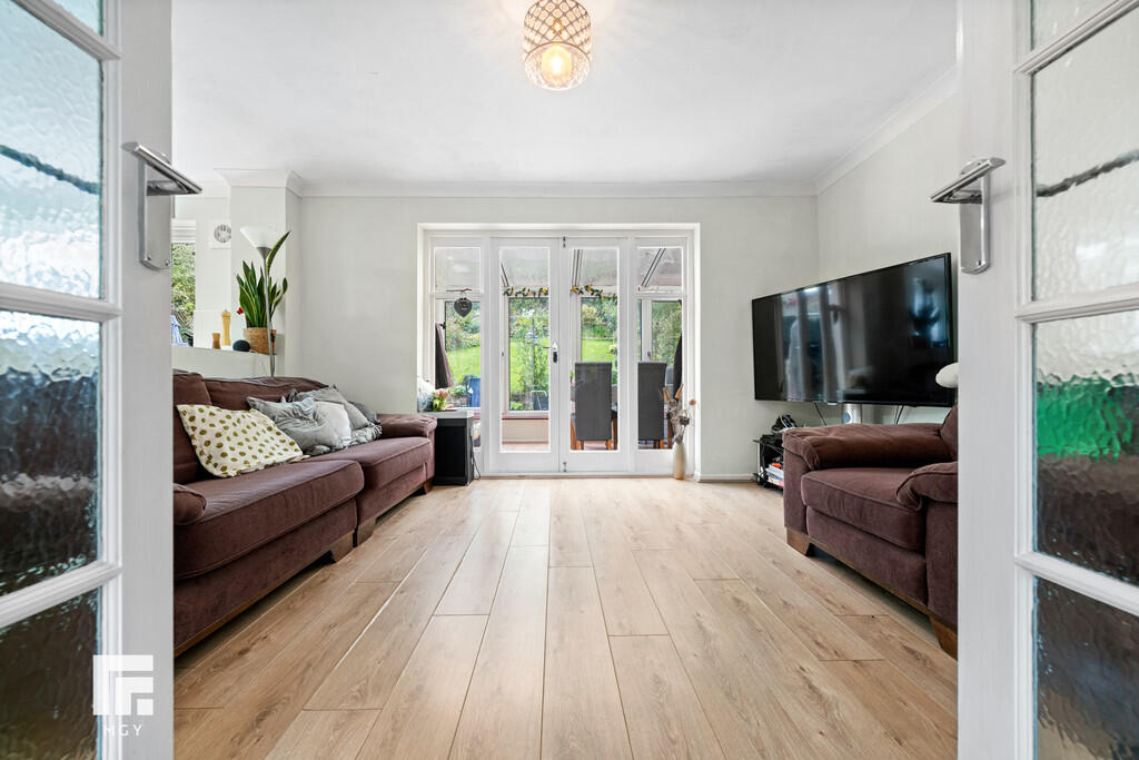 LOUNGE17' 1" x 13' 10" (5.22m x 4.24m) An excellent sized primary reception with large window to front. Double doors to sitting room. Laminate flooring. Radiator.