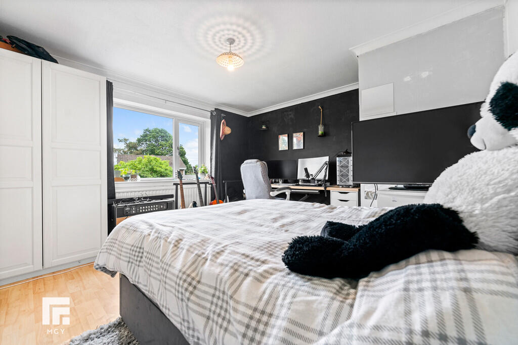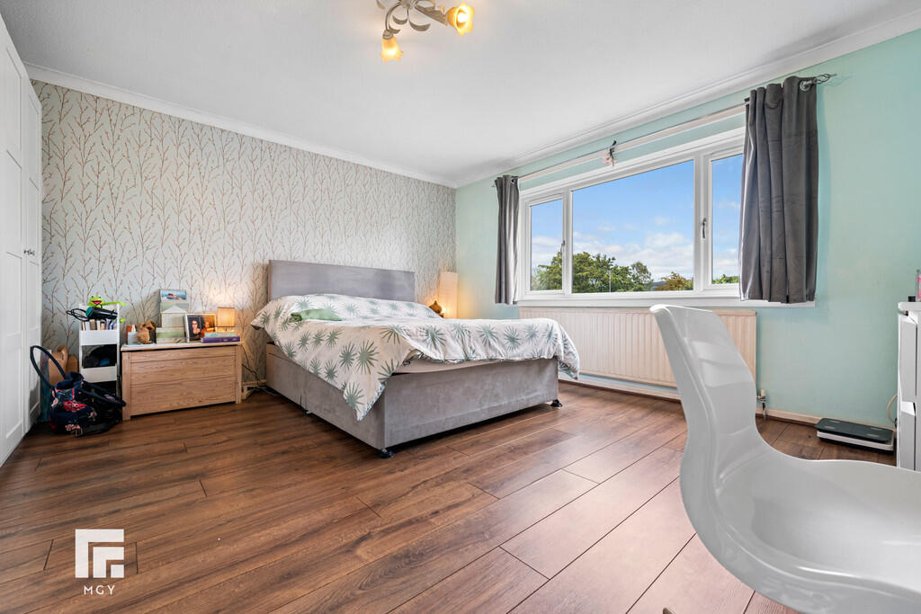 BEDROOMONE13' 10" x 13' 10" (4.24m x 4.22m) Overlooking the lawned front garden and entrance approach, an excellent sized primary bedroom. Laminate flooring. Radiator.