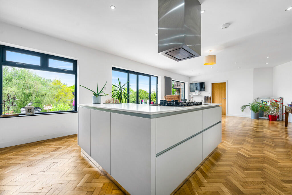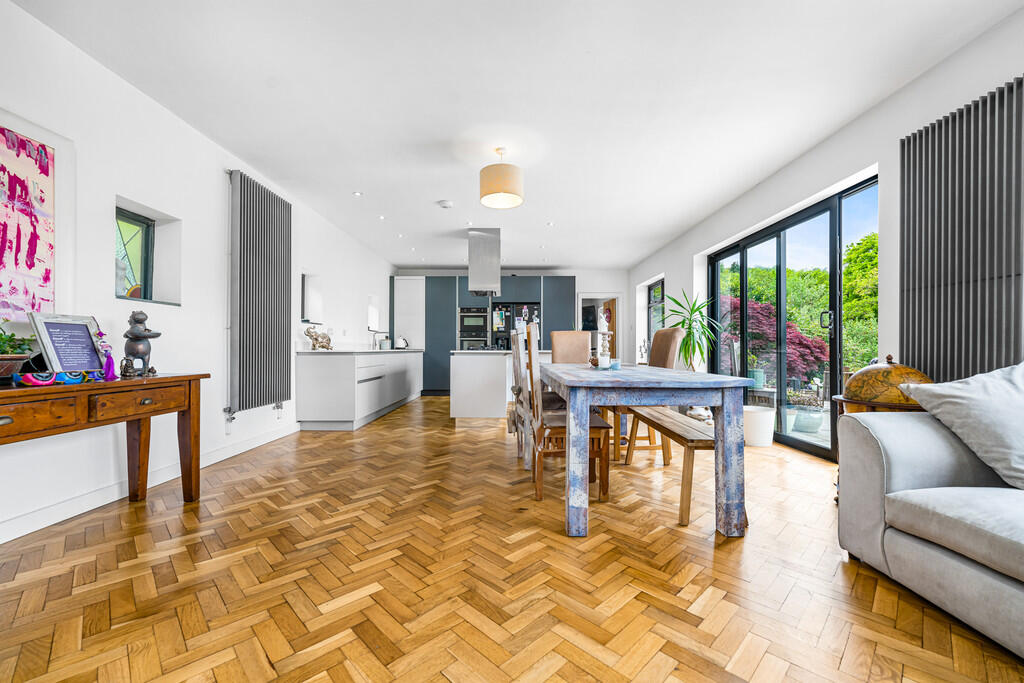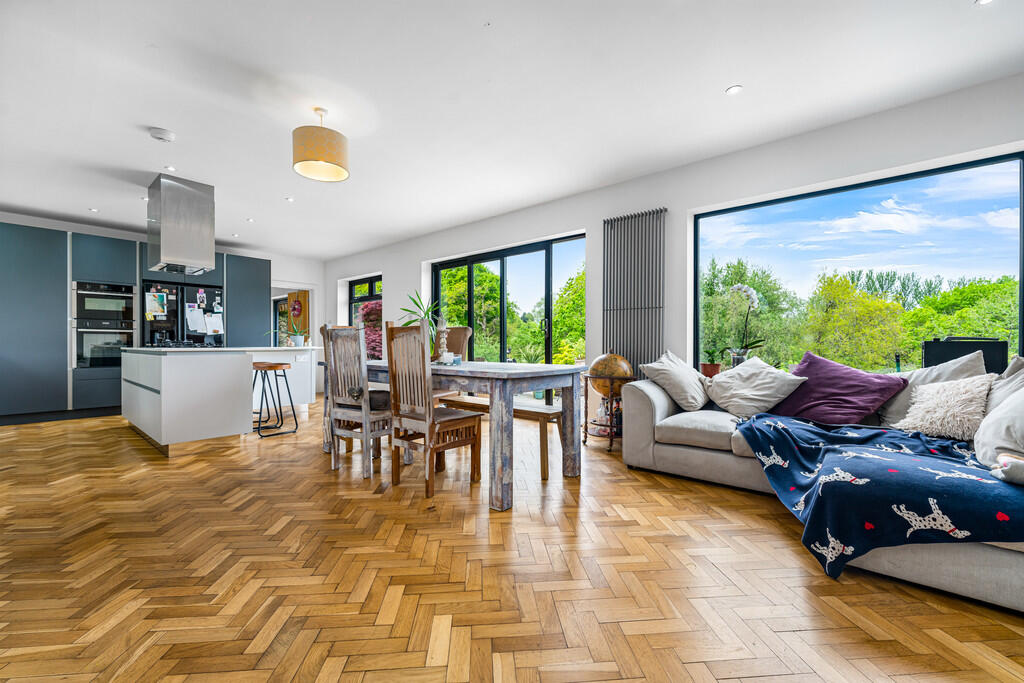 KITCHEN/DINING/FAMILYROOM29' 11" x 15' 8" (9.14m x 4.78m) A delightful open-plan space with modern Sigma-3 kitchen fitted with a wide range of base and full heigh units incorporating double bowl composite sink with complementary Quartz work surfaces. Fitted electric Neff double oven/microwave and five burner Neff gas hob with extractor hood over. Integrated dishwasher. Space for American fridge/freezer. Parquet wood flooring. Spotlights. Two column radiators. Three original double glazed stained glass windows to front, plus two windows and sliding patio doors offering superb views to rear over mature woodland. Oak doors to utility room and lounge.