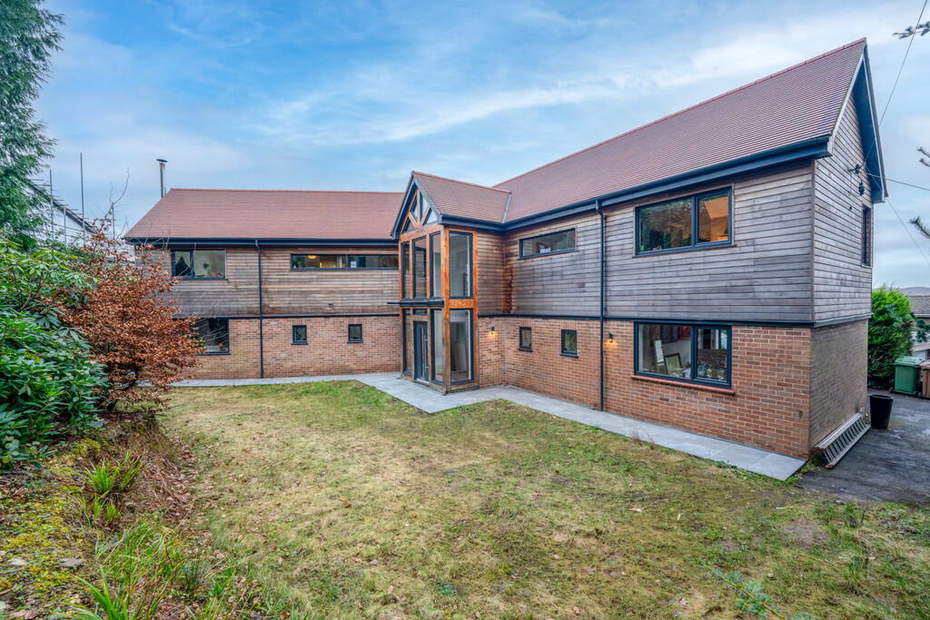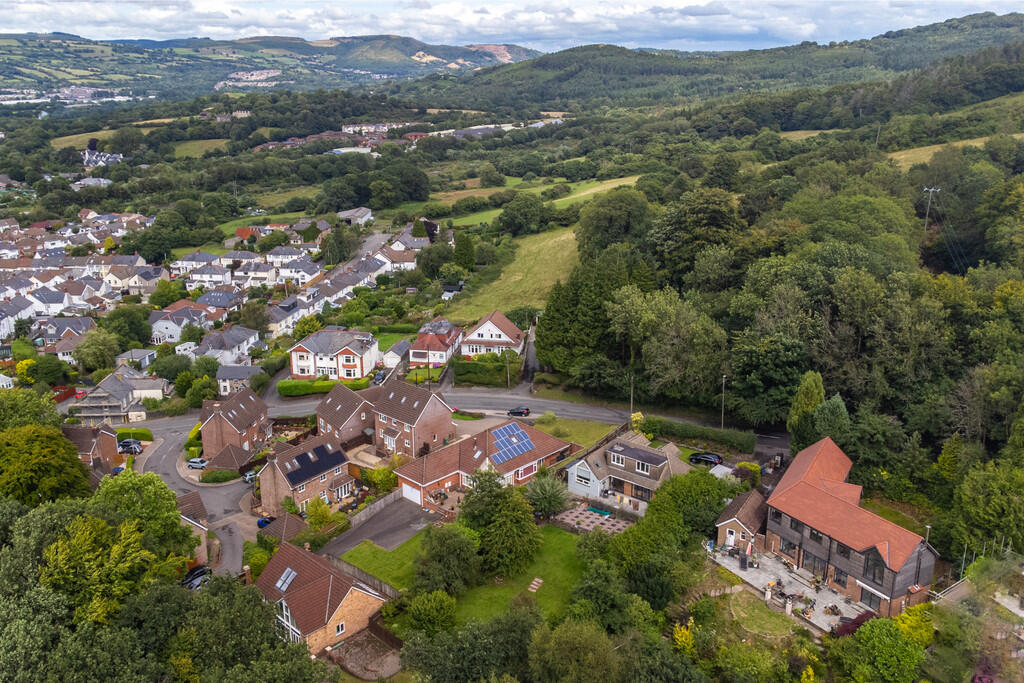** ARCHITECTURALLY DESIGNED** BEAUTIFULLY PRESENTED ** 4/5 DOUBLE BEDROOM DETACHED HOME ** An Architecturally appealing, cedar clad and beautifully presented four bedroom detached family home in an idyllic semi rural setting being a short distance from the town centre amenities and historic castle as well as local transport links and serene walks, enjoying a setting backing onto Caerphilly golf course. Large entrance hallway, spacious kitchen/dining and family room with modern ‘Sigma 3’ fitted kitchen, lounge with wood burner, Studio or bedroom five, hobby room/study, ground floor WC/Shower room. To the first floor is a bright large first floor landing, principal bedroom suite with dressing room, large vaulted ceiling bedroom and an ensuite shower room, a second bedroom with ensuite shower room, there are two further double bedrooms and a family bathroom. Gas central heating. A delightful, sizeable rear garden in a serene setting with South facing aspect. Garage.DESCRIPTION ** ARCHITECTURALLY DESIGNED** BEAUTIFULLY PRESENTED ** 4/5 DOUBLE BEDROOM DETACHED HOME ** An Architecturally appealing, cedar clad and beautifully presented four bedroom detached family home in an idyllic semi rural setting being a short distance from the town centre amenities and historic castle as well as local transport links and serene walks, enjoying a setting backing onto Caerphilly golf course. Large entrance hallway, spacious kitchen/dining and family room with modern 'Sigma 3' fitted kitchen, lounge with wood burner, Studio or bedroom five, hobby room/study, ground floor WC/Shower room. To the first floor is a bright large first floor landing, principal bedroom suite with dressing room, large vaulted ceiling bedroom and an ensuite shower room, a second bedroom with ensuite shower room, there are two further double bedrooms and a family bathroom. Gas central heating. A delightful, sizeable rear garden in a serene setting with South facing aspect. Garage.