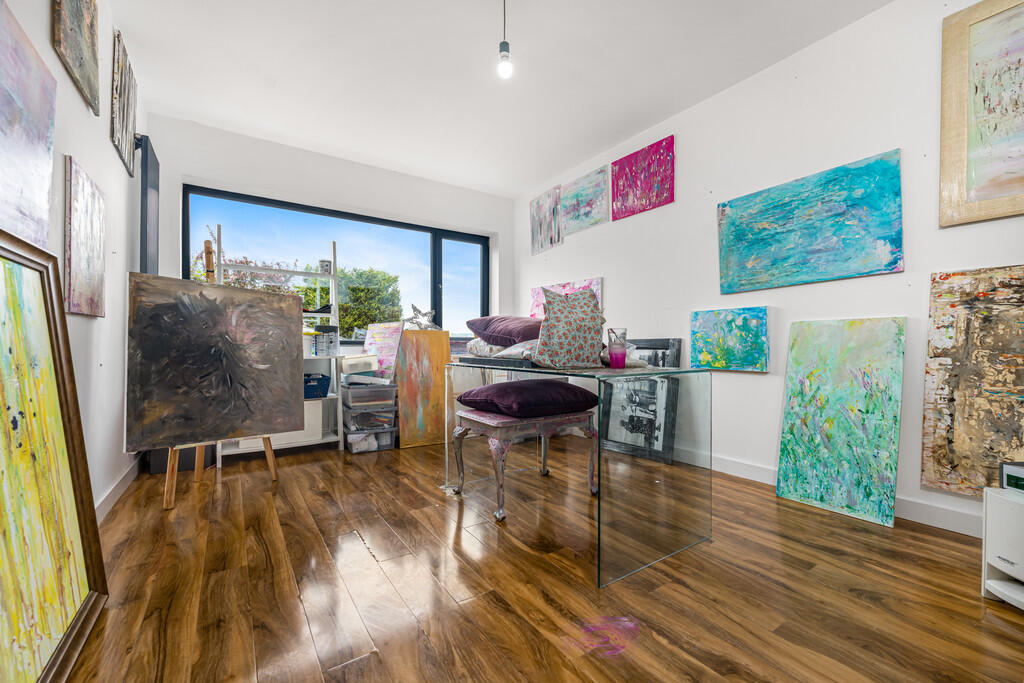 STUDIO/BEDROOM15' 7" x 14' 0" (4.75m x 4.29m) Currently used as an art studio but easily used as an additional bedroom. Laminate wood flooring. Double glazed windows to both sides. Column radiator.