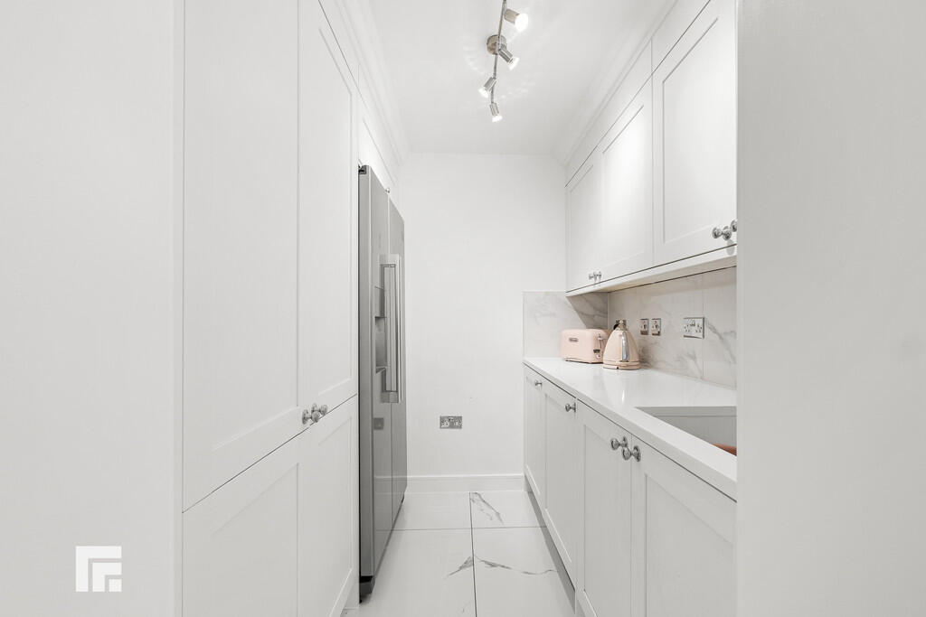 UTILITYROOM7' 1" x 4' 7" (2.18m x 1.42m) Fitted with base, eye level and full height units. Inset sink and complementary work surfaces. Porcelain tiled flooring with underfloor heating. Space for American fridge/freezer. Cupboard housing gas central heating boiler. Extractor fan. Space for washing machine and tumble dryer.