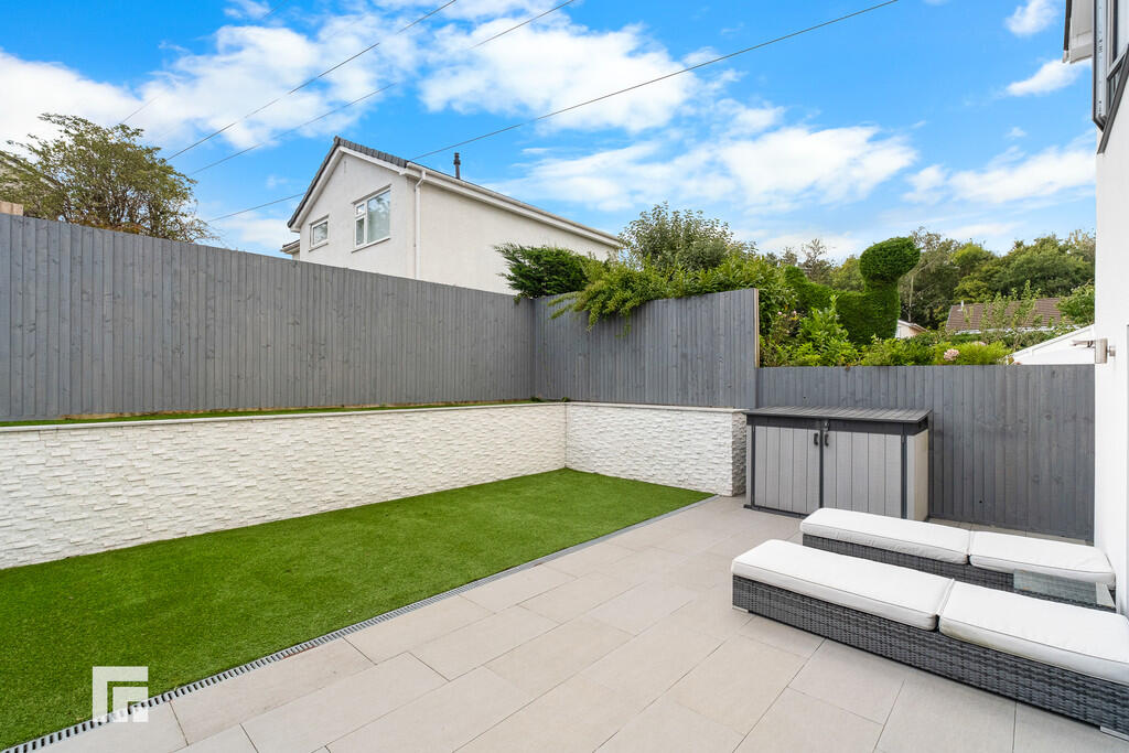 OUTSIDE A South Westerly facing, landscaped rear garden with full width paved patio and artificial lawn. Feature boundary wall with stone cladding. Boundary fence. Gated side access. Outside tap and power points.