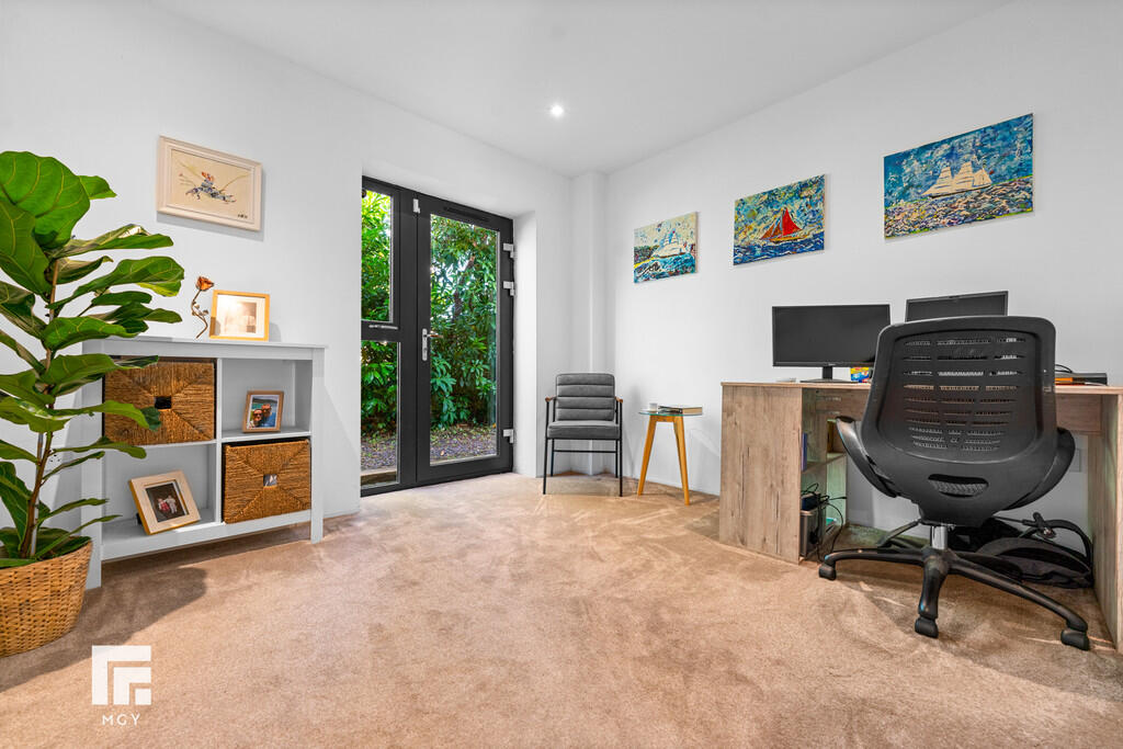 HOMEOFFICE/SNUG10' 4" x 9' 4" (3.17m x 2.86m) Home office or snug room, carpeted with underfloor heating and door giving access to the rear garden area. Large understairs storage cupboard.