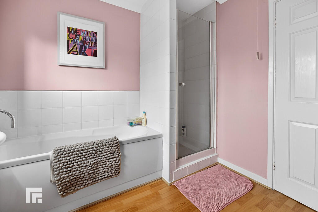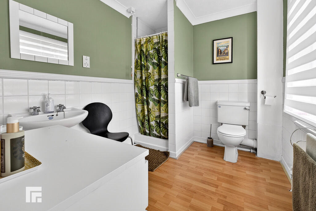 FAMILYBATHROOM8' 8" x 8' 3" (2.65m x 2.52m) Comprising low level wc, wash hand basin and panelled bath and shower cubicle. Tiled splash back. Radiator.