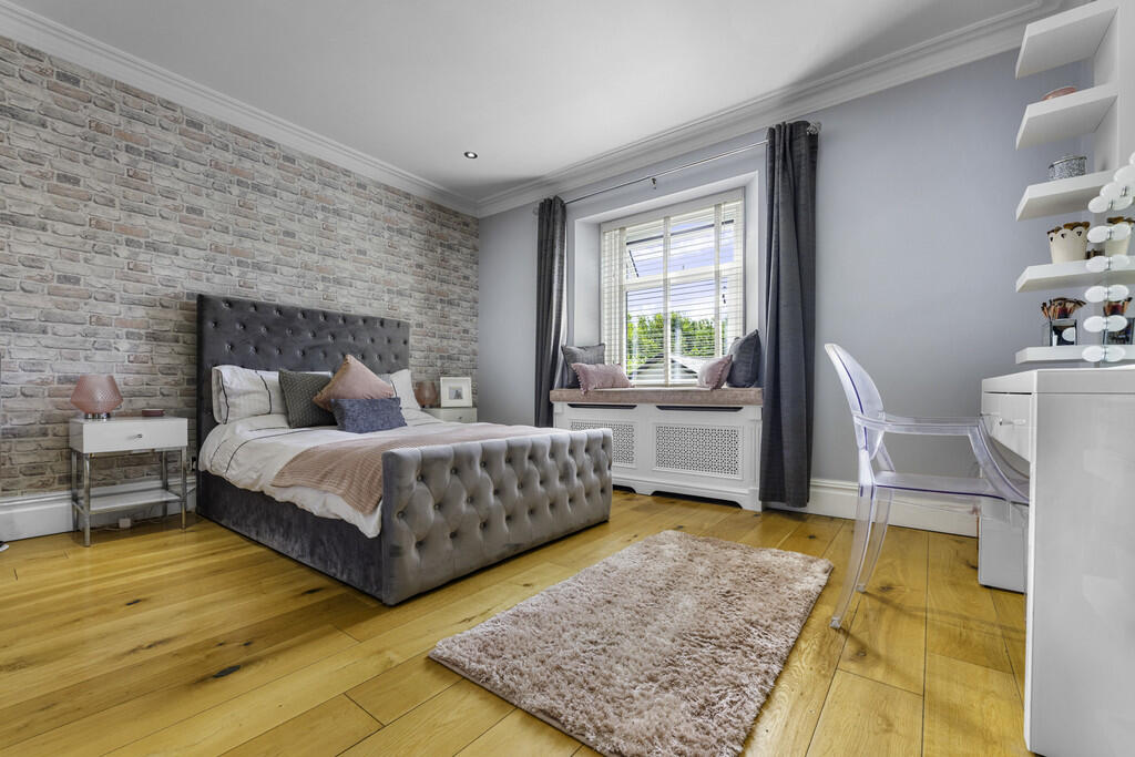 BEDROOMONE14' 6" x 12' 1" (4.42m x 3.7m) An excellent sized bedroom suite with windows to two aspects. Wood flooring. Radiator. Window seat. Double doors leading to the dressing room.