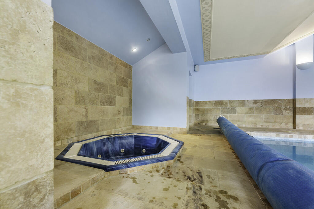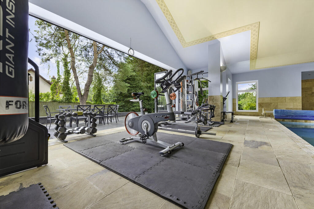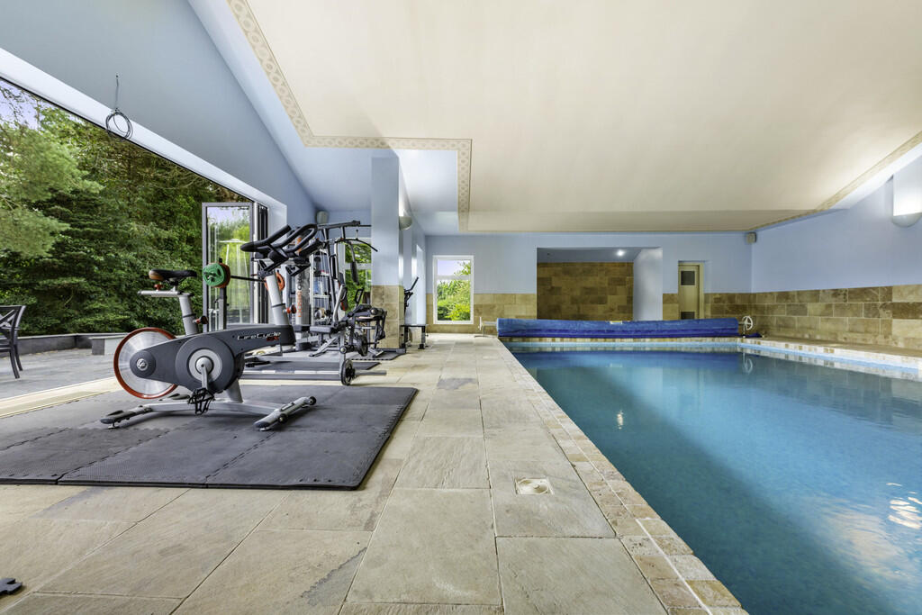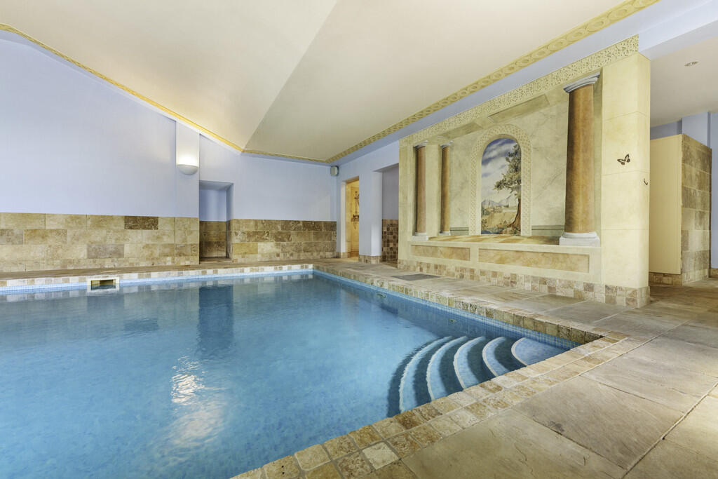 POOLROOM59' 8" x 37' 1" (18.20m x 11.31m) An exceptional pool room with pool measuring 12m x 6m. Fully tiled flooring throughout with additional space for gym area with double quad-opening doors leading to the paved patio/bbq area. Built in sunken jacuzzi. Large pool heater and pump room. Built in changing rooms and showers. Perfect example of a pool room/family entertainment area. Steam room and cloakroom.