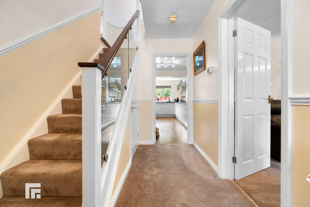 HALLWAY13' 3" x 6' 9" (4.05m x 2.07m) Entered via a uPVC door, good sized hallway. Built in, under stairs storage cupboard. Staircase leading to first floor with glass and wooden bannister.