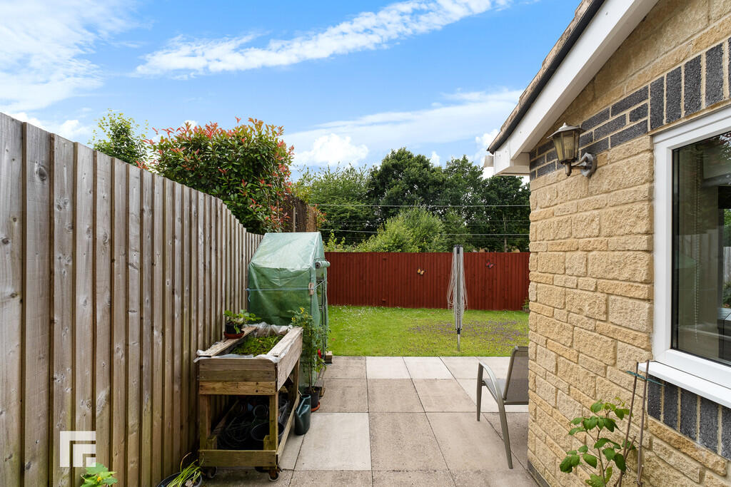 REARGARDEN Bordered by a timber fence, a level, well maintained rear garden. Paved patio area. Area of lawn with beds of mature plants and shrubs to one side. Outside tap. Timber gate to side for access.