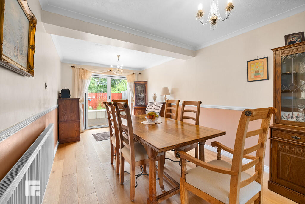 DININGROOM19' 0" x 9' 7" (5.80m x 2.93m) An extended dining room with solid oak floors. Ample space for dining room table. Radiator. Bi-fold doors opening into the beautifully maintained rear garden. Door through to kitchen.