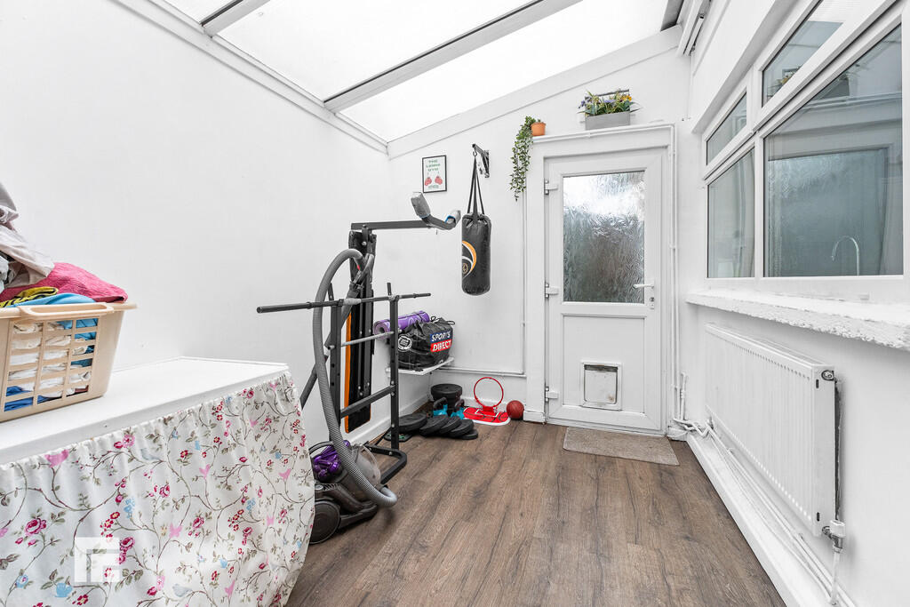 GARDENROOM11' 8" x 7' 9" (3.56m x 2.38m) Versatile rear garden room, could be utilised for storage or other uses. Laminate flooring. Door to garden. Radiator. Door to cloakroom.