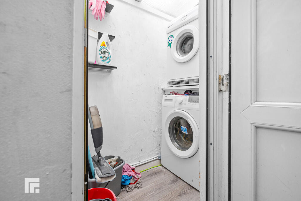 UTILITYROOM With plumbing for washing machine and stacked dryer.