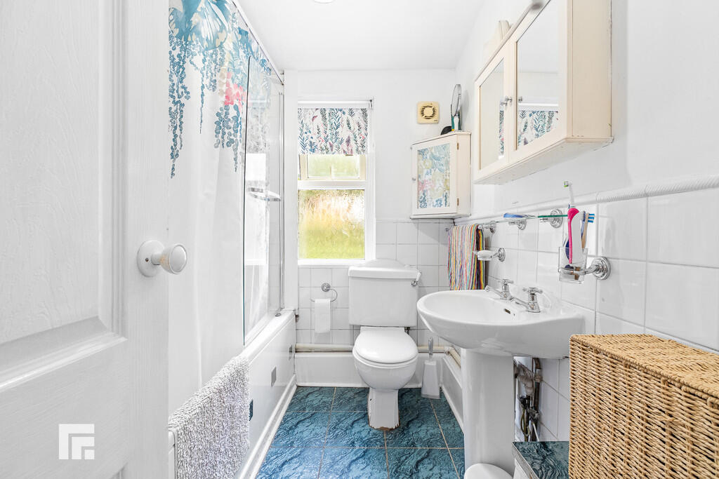 FAMILYBATHROOM6' 8" x 6' 1" (2.05m x 1.87m) White suite comprising low level wc, wash hand basin, panelled bath with shower above and swivel glass shower screen. Wall tiling to splash back areas. Tiled flooring. Obscured glass window to rear. Extractor fan. Heated towel rail.