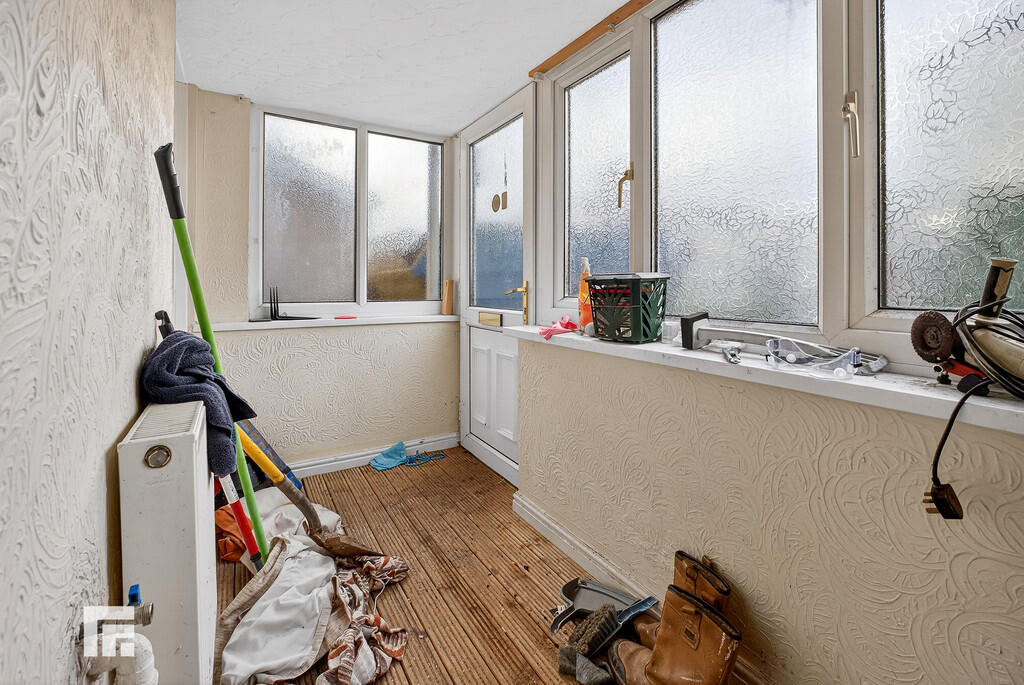 PORCH Obscured double glazed windows to front and side, and door. Decked flooring. Radiator. Doors to kitchen and entrance hall.