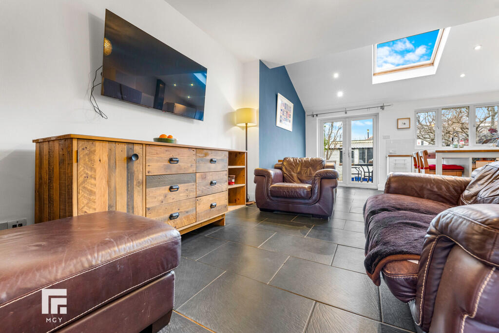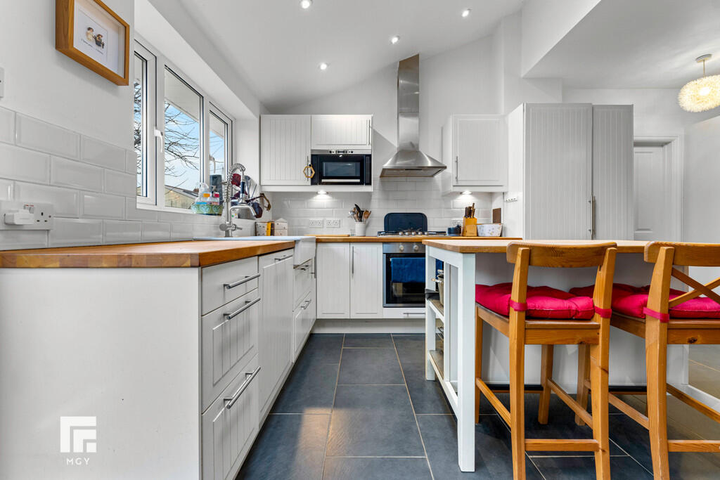 KITCHEN/DINING/FAMILYROOM21' 8" x 16' 3" (6.62m x 4.97m (max)) An open-plan kitchen/family room fitted with a wide range of traditional base and eye level units incorporating ceramic sink with complementary oak worktops. Integrated fridge/freezer, dishwasher and microwave. Fitted electric oven and 5 burner gas hob with extractor hood over. Tiled splash backs. Tiled flooring with underfloor heating. Spotlights. uPVC double glazed window, Velux window, and French patio doors to rear. Door to laundry room.