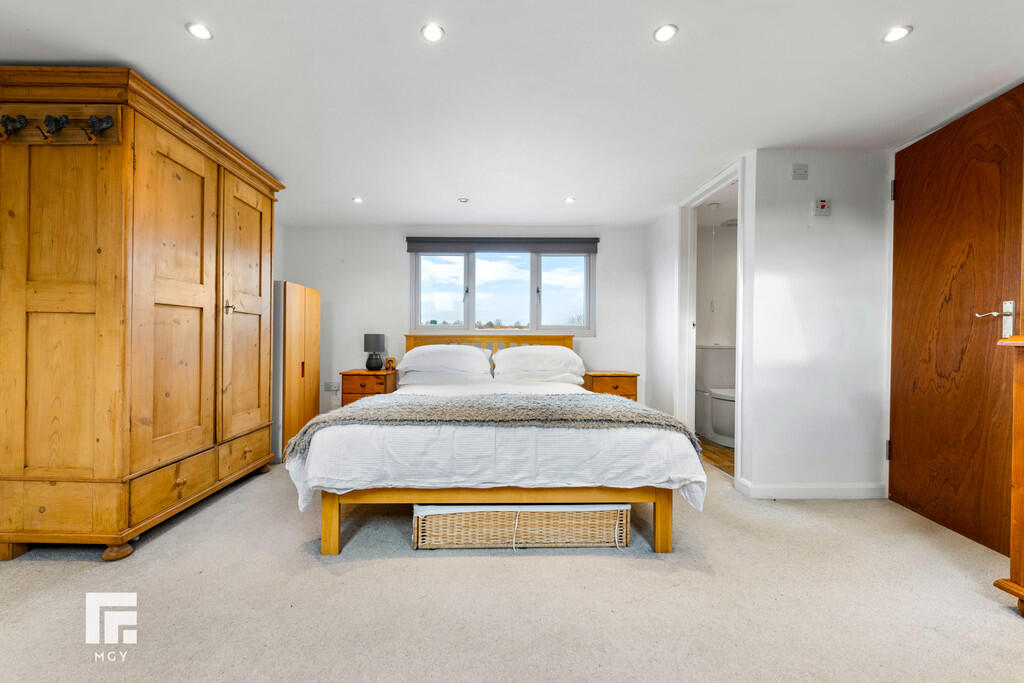 BEDROOMONE16' 4" x 13' 8" (4.99m (max) x 4.17m) uPVC double glazed window to rear and two double glazed Velux windows to front. Storage in to eaves. Cupboard housing Worcester gas boiler. Radiator. Spotlights. Door to en-suite.