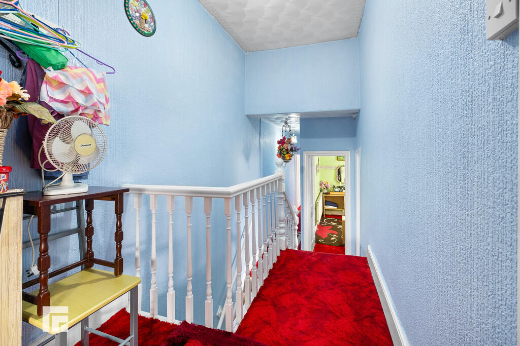 FIRSTFLOORLANDING Split level landing. Carpeted flooring. Pendant light fitting. Loft hatch. Doors to four bedrooms and bathroom.